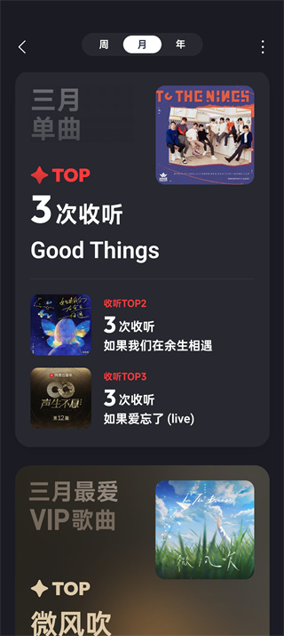 3、最后点击过后我们就可以查看到自己的听歌的次数,只需要滑动就可以找到;
