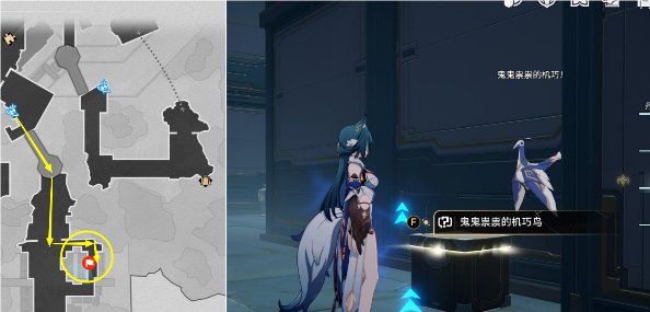 1、传送到幽囚狱-1层,在图中位置和鬼鬼祟祟的机巧鸟进行对话。